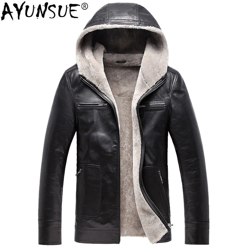 Ayunsue Giacca In Vera Pelle Da Uomo 100 Lana Cappotto In Pelliccia Naturale Giacca Invernale Da Uomo Giacche In Pelle Di Montone Spessa Con Cappuccio Dxl1571 My727 Genuine Leather Coats Aliexpress