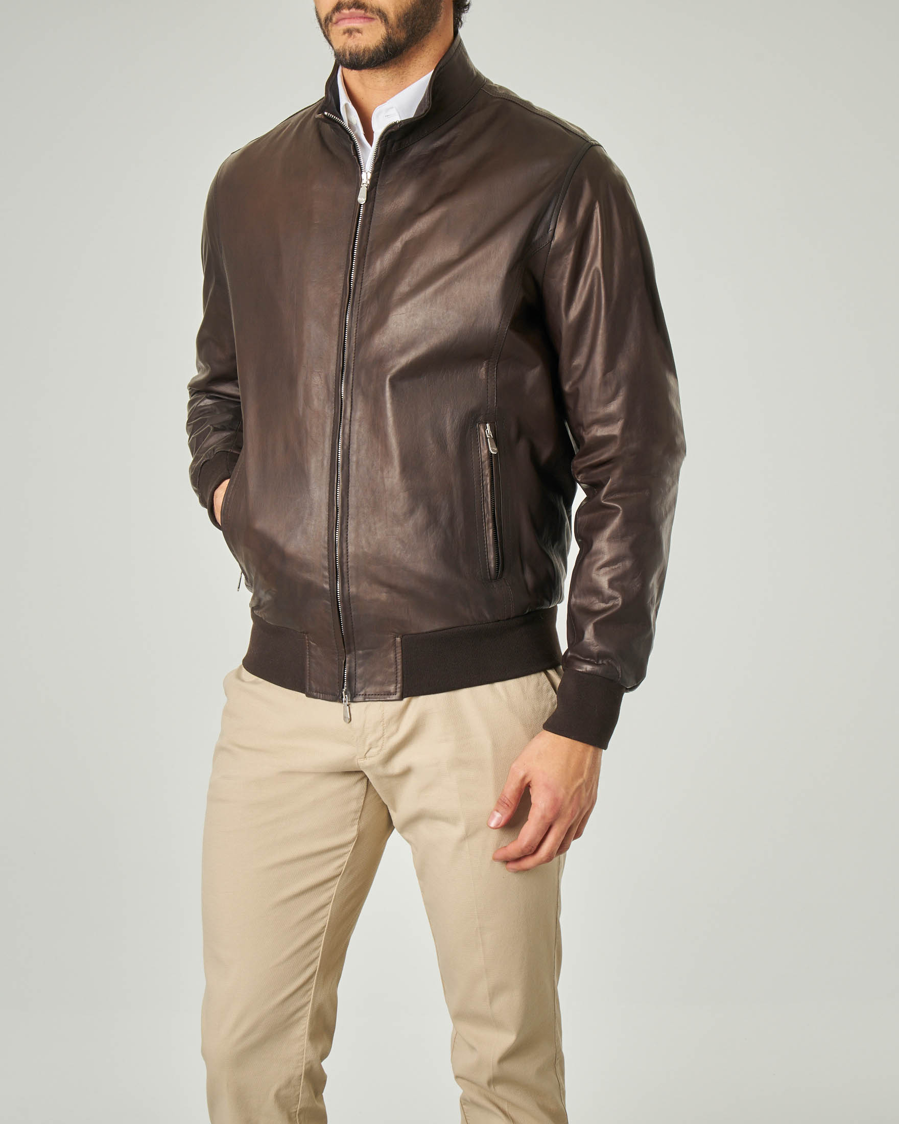 Giubbotto Bomber In Pelle Donna Testa Di Moro Pelle Bogota G155